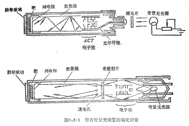新型的氧化铅管中就带有加入背景光的装置,图4.3-6示出两种带有加入背景光装置的氧化铅管的结构。
